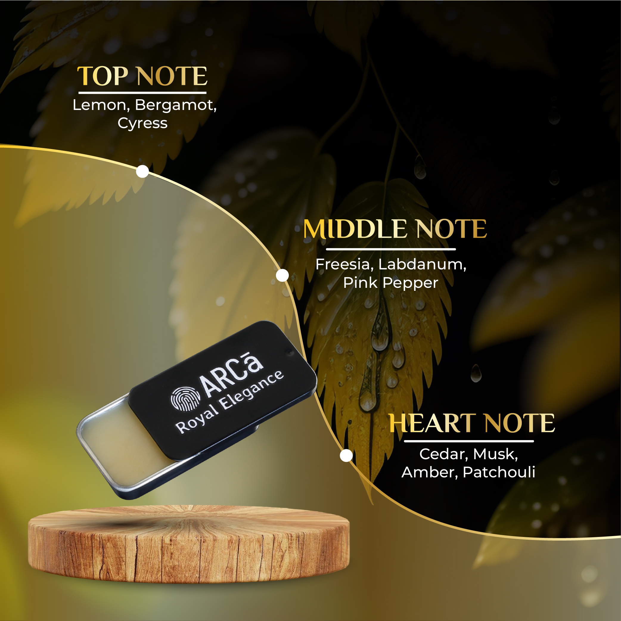 Arca’s ROYAL ELEGANCE Solid Perfume is the embodiment of majestic refinement. This 10g luxury unisex fragrance brings together an array of noble scents in a carefully formulated solid perfume.